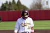 Central Michigan University sophomore infielder and outfielder Nathan Ball races to third base, securing junior catcher Aydin Wright a run at Theunissen Stadium on Saturday, April 19, 2025. Ball was up to bat four times, scoring one run and two hits. (CM Life | Jasmine Brookins)