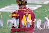 Central Michigan redshirt sophomore right-handed pitcher Jared Hanson high-fives teammates after recording the last out of the inning at Keiltiz Field at Theunissen Stadium, Sunday, April 6, 2025. Hanson allowed five of Kent State’s eight earned runs. (CM-Life | Mark Hoover)