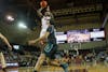 Central Michigan University sophomore forward Keenan Garner scores a 3-pointer at McGuirk Arena on Tuesday, Jan. 20, 2026. Garner scored 10 points against Ball State, playing 33 minutes. (CM-Life | Jasmine Brookins)