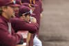 Central Michigan baseball players watch Central Michigan junior infielder Aaron Piasecki bat at Keiltiz Field at Theunissen Stadium, Saturday, April 5, 2025. Piasecki went hitless in the game. (CM-Life | Mark Hoover)