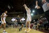 Central Michigan University senior guard Logan McIntire shoots and scores a three pointer during a basketball game against Eastern Michigan University at McGuirk Arena, Tuesday, Jan. 27, 2026. McIntire led the team in points scoring 19, additionally getting two rebounds and three assists. (CM-Life | Jasmine Brookins)