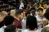 The Central Michigan University men's basketball team celebrates in a team huddle after defeating Eastern Michigan University 100-65 at McGuirk Arena, Tuesday, Jan. 27, 2026. The team will host Bowling Green State University for the annual toilet paper toss, Saturday, Jan. 31, 2026. (CM-Life | Jasmine Brookins)